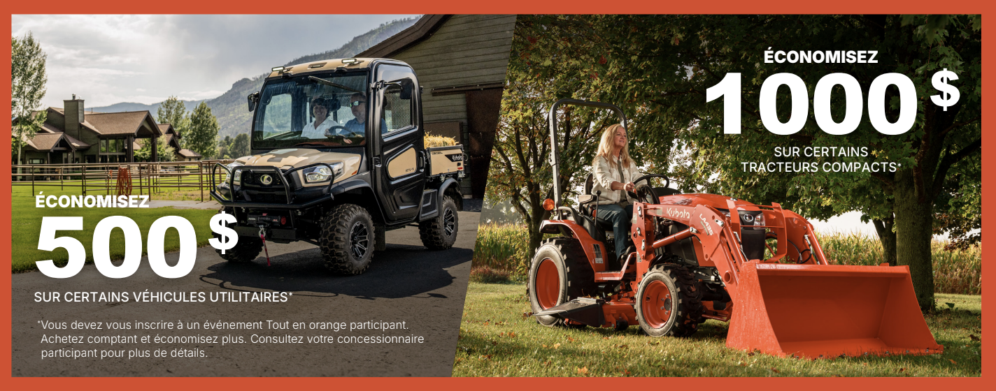 Profitez de rabais exceptionnels: Obtenez 500 $ à 1 000 $ de rabais sur une sélection d’équipements Kubota.